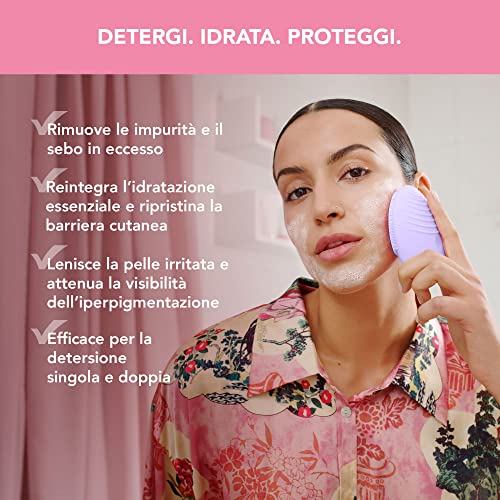 FORMULA DELICATA Questo delicato detergente viso dona una pelle sana, morbida, fresca e nutrita senza compromettere la naturale barriera protettiva o causare una sensazione di pelle tesa.