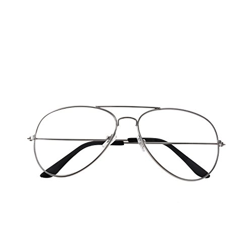 Forepin - Occhiali da vista unisex, montatura in metallo, lenti per uomo e donna, adulti, vintage, vetro trasparente, stile aviatore, colore: Argento