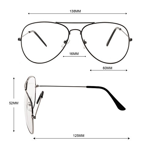 3. Occhiali da aviatore trasparente: 60 mm (larghezza) x 52 mm (altezza).