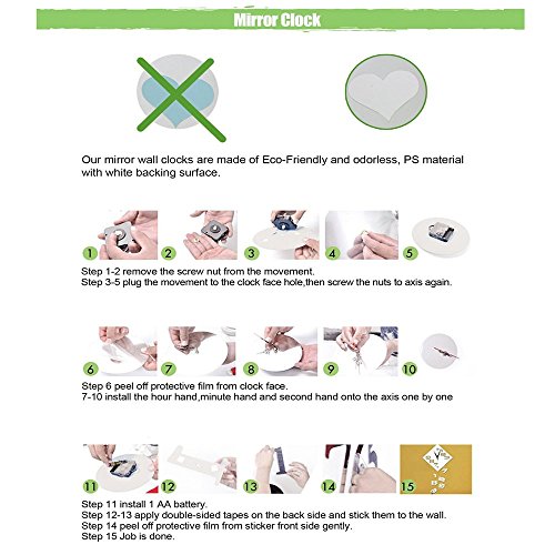 Forepin Orologio da parete DIY Adesivi murali Bricolage specchio 3D industriale Design moderno, per salotto ufficio Decorazione casa, ufficio Clock Camera-Adesivo rimovibile
