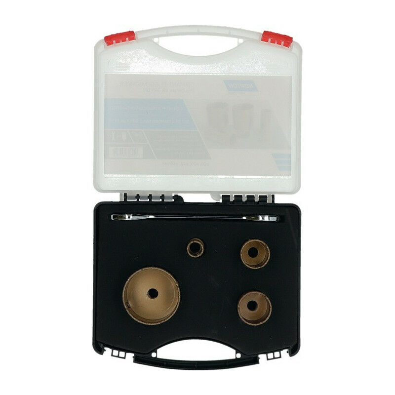 Punte diamantate per la foratura a umido ea secco di prodotti ceramici e densi, pietre naturali, lastre di marmo e granito e persino gres porcellanato fine · Con attacco M14 per montaggio su smerigliatrice angolare Altre caratteristiche tecniche: · Contenuto: 5 pz.
