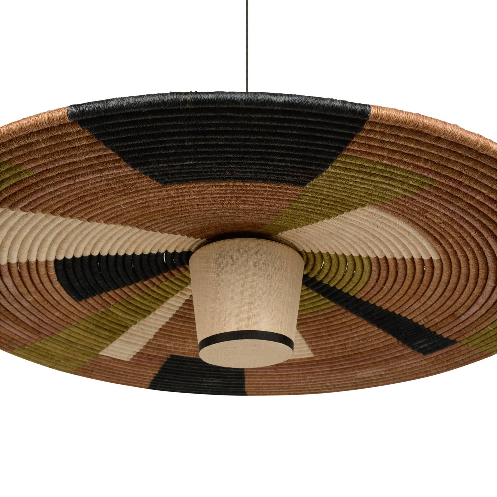 Lampada a sospensione Parrot XL con paralume fatto a mano da rattan e abacá L'ampia lampada a sospensione Parrot XL è meravigliosamente adatta per illuminare grandi tavoli da pranzo o da soggiorno. L'ombra fatta a mano è composta da corde individuali che sono colorate in modo diverso e quindi producono un motivo speciale. Questo design rende la lampada un attraente eye-catcher nella zona giorno. Il cavo in tessuto nero e il tettuccio in metallo, anch'esso nero, completano il look generale di Parrot XL. All'interno del paralume c'è il portalampada, che è circondato da un piccolo diffusore separato. Questo assicura che la luce possa raggiungere l'esterno senza abbagliamento. Il design della lampada risale al product designer Jette Scheib, che si ispira principalmente alla natura, alle forme organiche e alla vita quotidiana delle persone. Dal 2018, lavora principalmente nel campo dell'interior e lighting design. Il rinomato produttore francese di apparecchi d'illuminazione Forestier, che pone molta enfasi sul tema della sostenibilità, è responsabile della produzione.