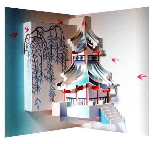 Forever Cards POP120 - Biglietto popup, motivo: padiglione orientale, tagliato al laser, realizzato a mano