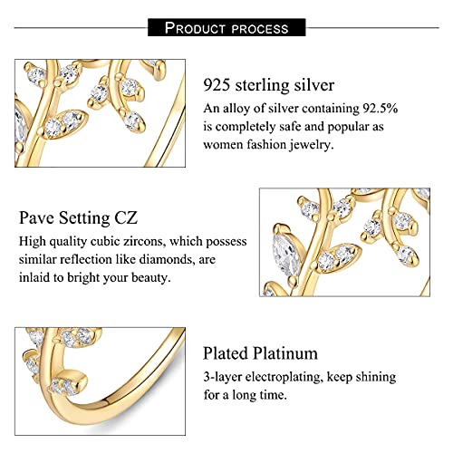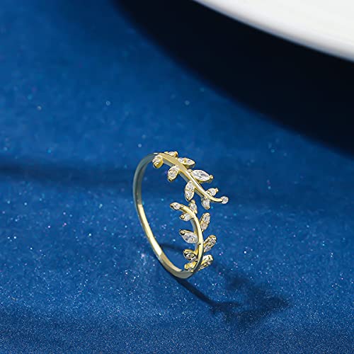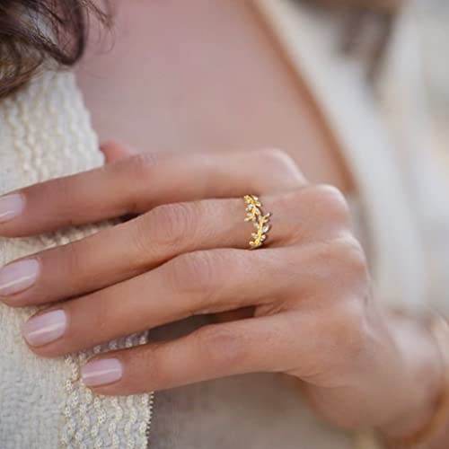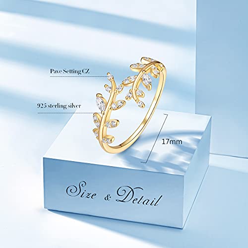 FOREVER QUEEN Anello foglia d'ulivo Anello regolabile a fascia aperta Anello in argento sterling 925 Anelli di moda per donna Anniversario di fidanzamento di matrimonio (oro)