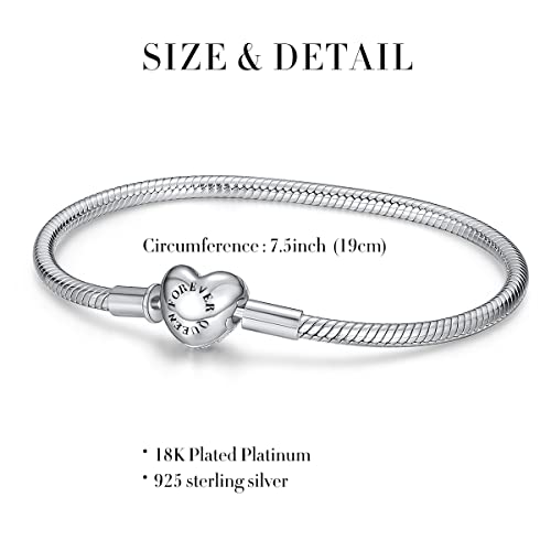 FOREVER QUEEN Bracciale in argento 925 Chiusura a cuore Zircone Bracciale classico con catena a serpente per Charms (Dimensione del bracciale 17.5cm 18cm 19cm 21cm) (19CM)
