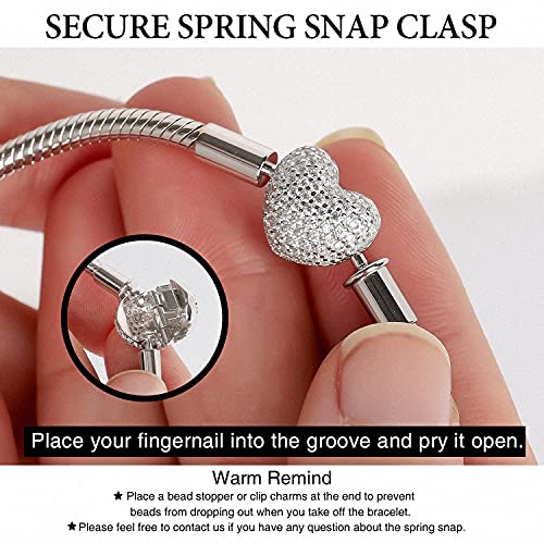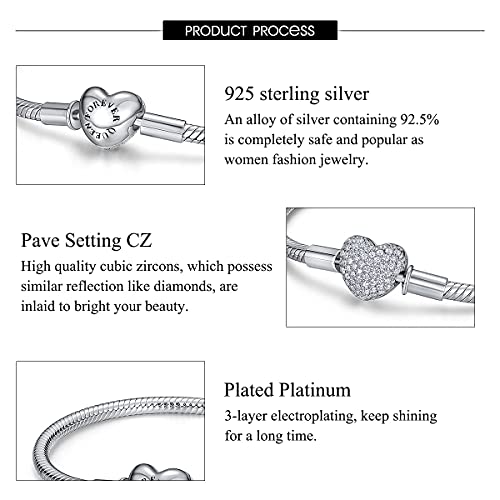 【Ispirazione per il design】Aggiungi i tuoi charm preferiti e crea un braccialetto di charm tutto tuo. La chiusura a forma di cuore fatta a mano è incastonata con pietre zirconia scintillanti. Indossato da solo o con il tuo fascino preferito, questo braccialetto in argento sterling 925 accentuerà il tuo look regale nell'abbigliamento quotidiano e nelle feste.