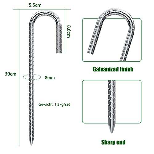 ★ Dimensioni ancoraggio: l'acciaio extra spesso con un diametro di 8 mm assicura che l'ancoraggio a terra non si rompa nemmeno su terreni estremamente duri e rocciosi. Questi picchetti sono disponibili in 30 cm di lunghezza per garantire la loro stabilità.