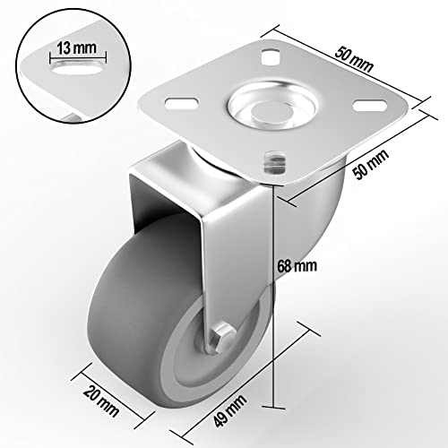 Forever Speed Ruote da trasporto, 12 x 50 mm, carico 40 kg cad., lamiera di acciaio e polipropilene, zincato grigio chiaro (12 pcs)