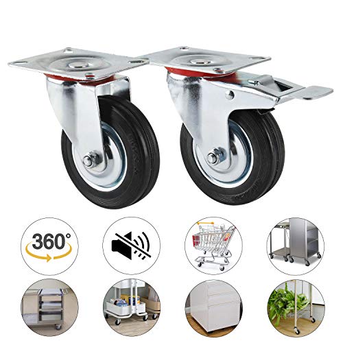 Forever Speed Ruote per il Trasporto Ruote Girevoli e Ruote con Freno Ruote per Carichi Pesanti Nero Gomma Lamiera d'acciaio, Argento Galvanizzato / Nero 4 pezzi in set 125 mm Carico 300KG