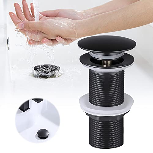 Foreverup Spina pop up per lavandino, clic, per lavabo non scanalata, nero opaco, con presa a scatto a molla, per lavandino del bagno, colore: nero