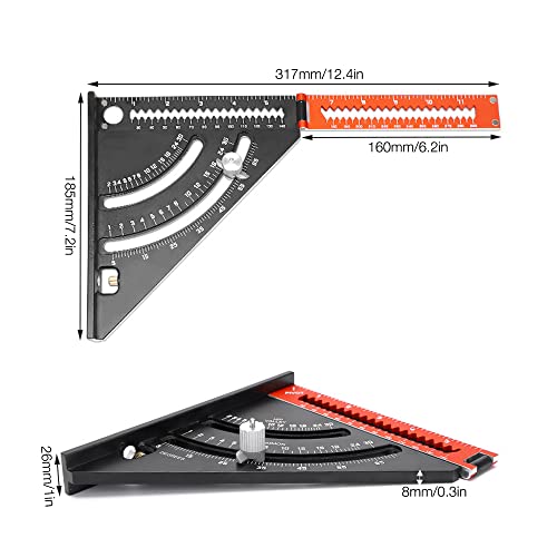 Foreverup Triangolo Squadra da Carpentiere Goniometro Quadrato, Multifunzione Squadra da Falegname in Allumino, Squadra di Alluminio Strumenti per Misurazione/Fai da Te
