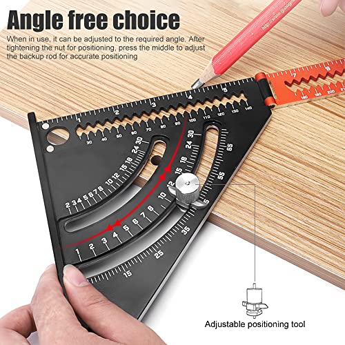 [Facile da Usare e Trasportare] - Triangolo Squadra da Carpentiere Goniometro Quadrato è molto facile da usare, il proprio filo di coda può essere utilizzato anche come strumento per disegnare linee e Squadra da Falegname in Allumino ha unasta del righello pieghevole, che può estendere la distanza di misurazione, risparmiare spazio di