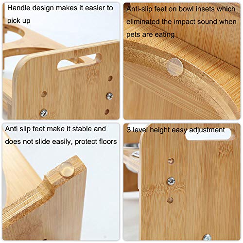 Antiscivolo stabile. Le mangiatoie per cani rialzate con piedini antiscivolo lo rendono stabile e non scivola facilmente, impedisce al tuo animale domestico di far scivolare le ciotole e fornisce protezione per i tuoi pavimenti. Aumenta i piedini antiscivolo sugli inserti della ciotola che eliminano il rumore di impatto quando gli animali stanno mangiando. Montaggio semplice!