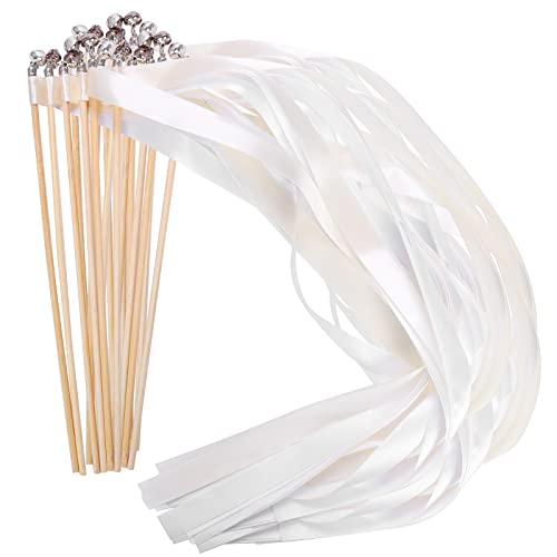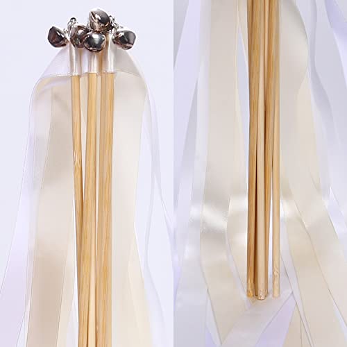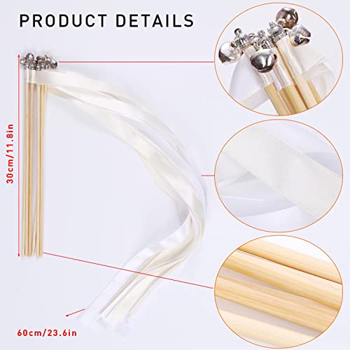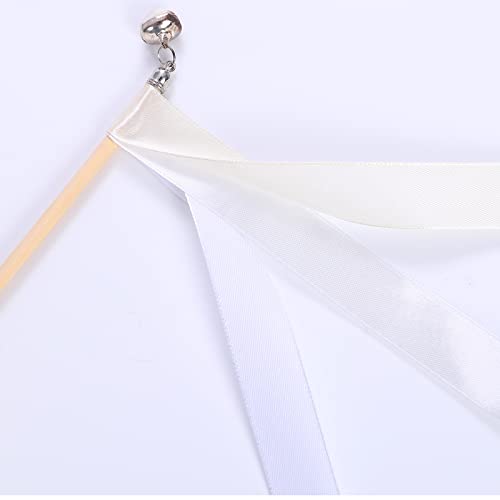 Forfamy 30 bacchette magiche con campane a nastro, pizzo fata stick con nastro bianco per matrimonio, Natale, compleanno, festa, seta, nastro di pizzo, con campanelle