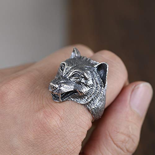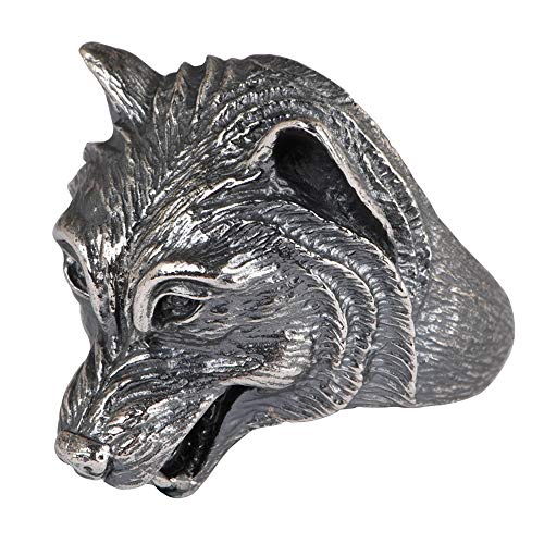 ForFox Anello Aperto Testa di Lupo in Argento Sterling 925 Nero per Uomo Regolabile