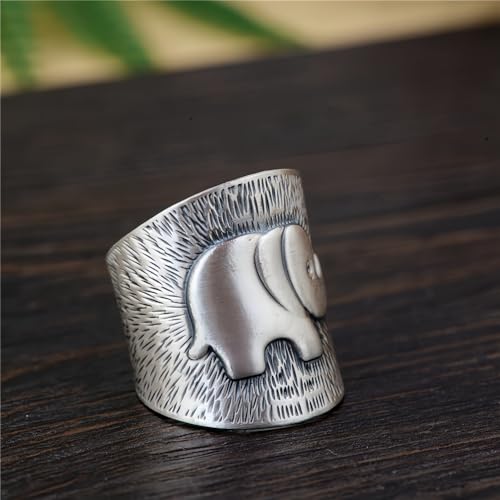 ForFox Anello Elefante in Argento Sterling 999 Opaco Vintage per Donna Uomo Regolabile