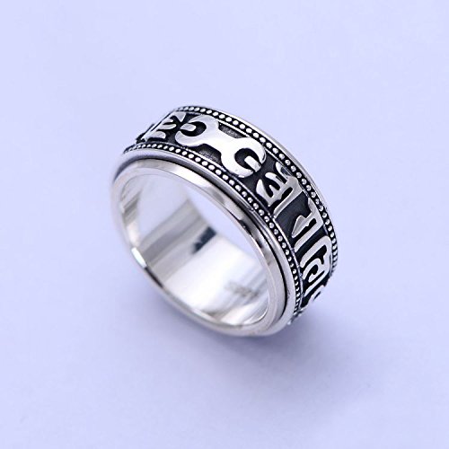ForFox Anello a Fascia Girevole Buddista Om Mani Padme Hum Mantra in Argento Sterling 925 per Uomo Donna 10mm Taglia 27