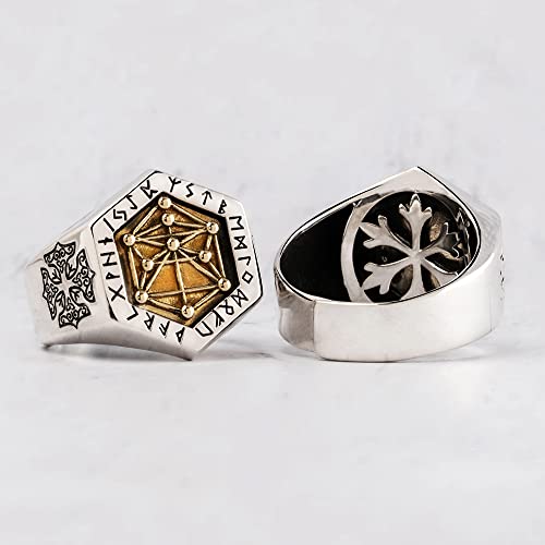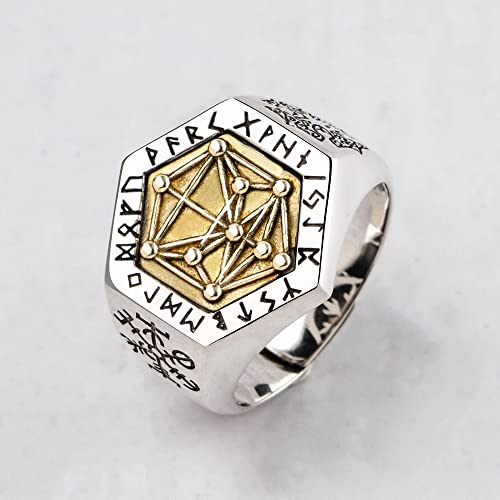 ForFox Anello Rune Vichingo e Albero della Vita cabala in Argento Sterling 925 Vintage per Uomo Donna Regolabile