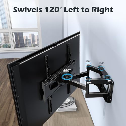 【Supporto da Parete per TV a Doppio Braccio】 Il nostro supporto per TV girevole è dotato di un robusto braccio a 6 bracci a doppia articolazione realizzato in acciaio resistente che può supportare fino a 45 kg, quindi non devi preoccuparti della sicurezza. La piastra a muro migliorata è più ampia per un maggiore supporto, mentre i cappucci antigoccia e i blocchi di sicurezza aiutano a mantenere la TV in posizione.