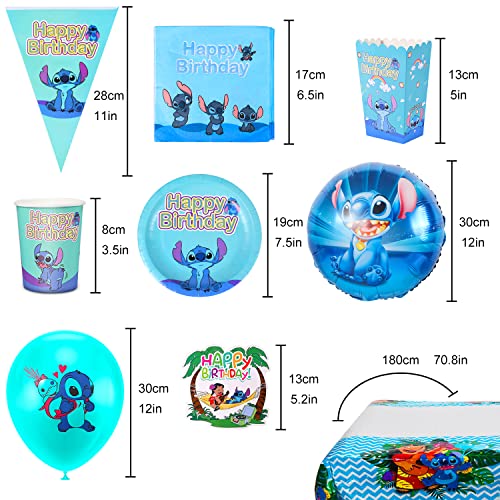 Forhome Lilo Stitch - Accessori per Feste, 63 Pezzi, Decorazione per Feste di Compleanno, Piatti, Bicchieri, tovaglioli, bandierine per 10 Ospiti