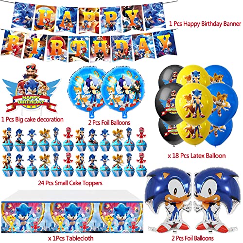 Forhome Sonic - Set Di Decorazioni Per Feste Di Compleanno, 49 Pezzi, Articoli Per Feste Di Sonic Set Di Decorazioni Per Feste, Palloncini, Tovaglie, Striscioni, Cupcakes