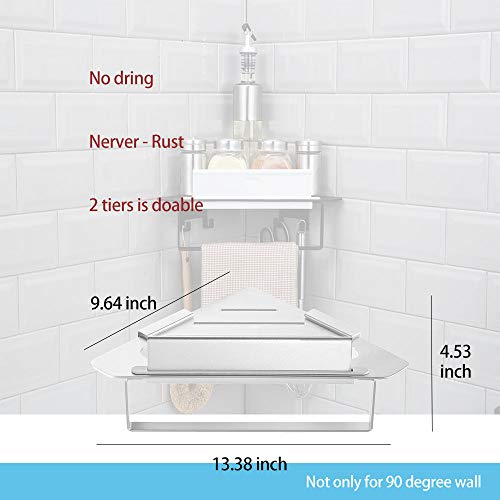 Forious, Mensole ad Angolo da Bagno Senza Foratura, con Lavavetro per Cabina Doccia, Gancio Portasciugamani, Porta Asciugamani, mensola angolare da cucina, colla brevettata + autoadesivo 3M, Alluminio