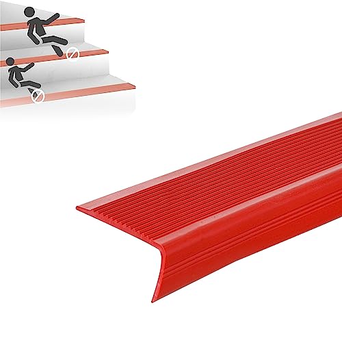 Forma A L Nastro Adesivo Antiscivolo per Scale, Materiale Pvc Strisce Antiscivolo per Scale Interne ed Esterne, Tappetini per Gradini Esterni, Impermeabile Antiscivolo, Adatto per Scale ( Color: Red