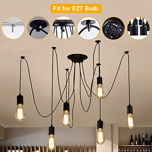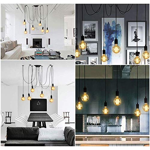 【Design vintage】 Non solo questo lampadario a sospensione a 6 teste a soffitto antico vintage è pratico da usare, ma ha anche un bell'aspetto, 6 teste collegate con 6 cavi ti consentono di posizionarle e formare qualsiasi modello che ti piace, più luci insieme lo faranno sembrano più stelle nella notte oscura, non è solo una lampada per portare luce ma anche una decorazione squisita per rendere la tua stanza molto più unica e carina