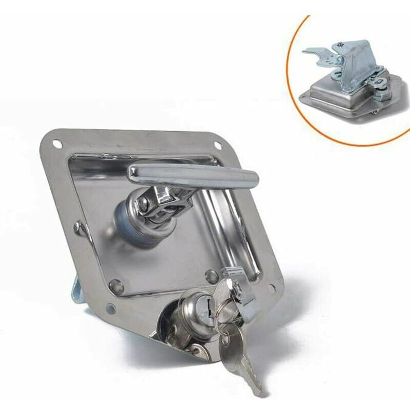 Acciaio inossidabile - è realizzato in acciaio di alta qualità e acciaio inossidabile. Trattamento superficiale cromato lucido/lucido 【Con copri buco della serratura】 Con copertura del buco della serratura, antipolvere e antiruggine. Quattro fori di montaggio per il montaggio diretto 【Dotato di tampone in gomma】con guarnizione in gomma, buone prestazioni di tenuta, antipolvere e impermeabile 【Buona resistenza alla corrosione】Lega di zinco testurizzata, rivestimento nero resistente, durata, elevata tenacità, nessuna deformazione 【 Una vasta gamma di applicazioni】può essere utilizzato in armadi di controllo, cassette degli attrezzi, armadi di distribuzione elettrica, armadi di controllo, rimorchi, camion, ecc.