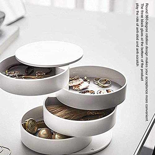 Forma Rotonda Portagioielli, 4 Strati Scatole Portagioie con Rotazione a 360 Gradi, Piccolo Donna Scatola di Gioielli Organizzatore per Anelli, Collane, Orecchini, Braccialetti Regalo (Bianco)
