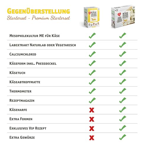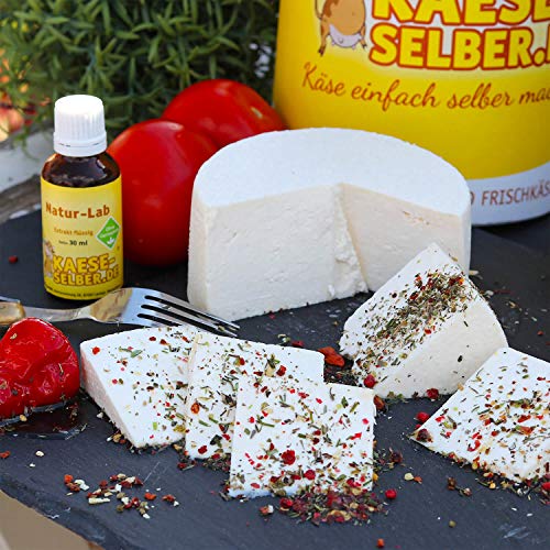 Kit per formaggio fai da te, set di base, incl.ricettario e video tutorial (per formaggio, quark e formaggi freschi);