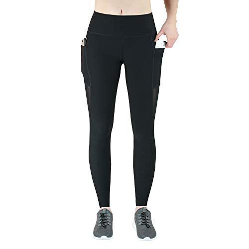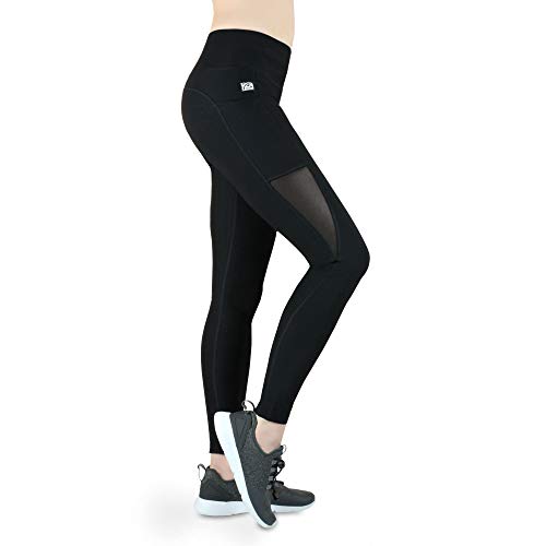 Formbelt Variosports Leggings Lunghi con Inserti in Mesh con Tasche - Pantaloni da Corsa da Donna, opachi, con Tasca a Vita Alta, Controllo Tummy per Smartphone, Cellulare, Tessuto a Rete, Nero, XS
