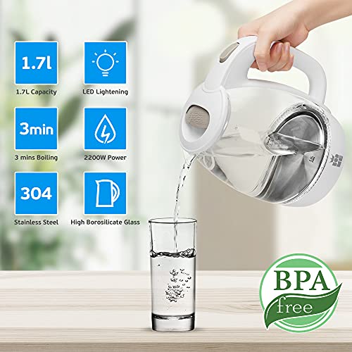 Bollitore in vetro e acciaio inox, 1,7 l, 2200 Watt, con illuminazione a LED