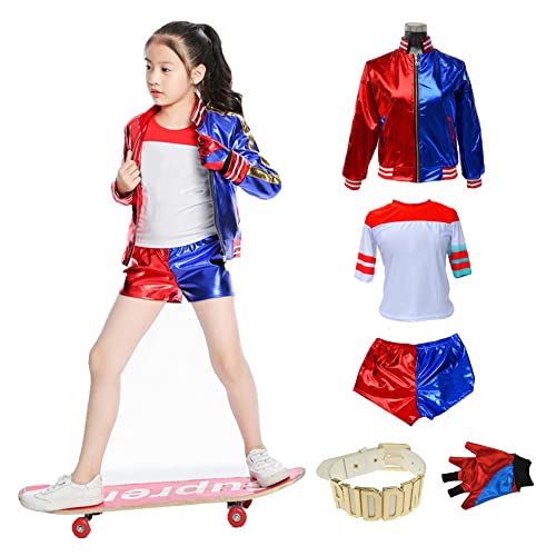 Formemory Costume Cosplay per ragazze rosso e blu Halloween costume cappotto e pantaloncini camicia con collare guanti (bambini (140 cm)