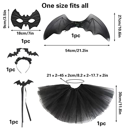 Il set include: 5 pezzi di costume da pipistrello/ragno per bambini, include maschera per gli occhi, tiara, bacchetta magica, ali, tutù.
