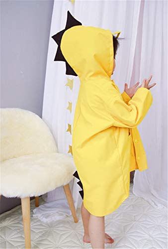 Formesy Unisex Bambino Impermeabile di Pioggia Incappucciati Cartoon Dinosauro Poncho con Cappuccio Giacca Antipioggia (Giallo, M)