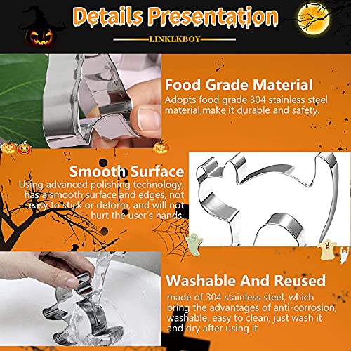 【Facile da Lavorare e Pulire】: il tagliente liscio e affilato rende lo stampino per biscotti di Halloween facile da usare per adulti e bambini. Basta premere la forma dello stampino per biscotti nell'impasto del biscotto per sformare e mantenere facilmente e rapidamente la forma del biscotto. Facile da pulire, lavabile in lavastoviglie.