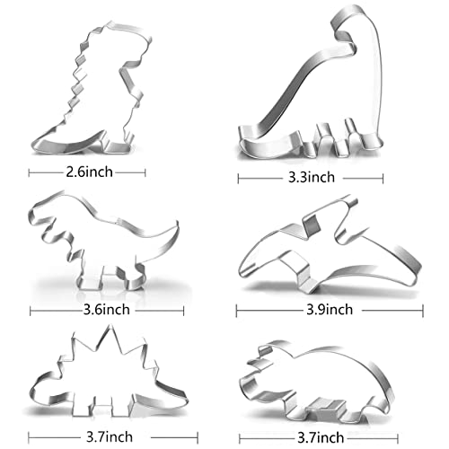 Set di formine per biscotti a forma di dinosauro, formine per biscotti a forma di dinosauro, 6 pezzi, T-Rex, Pterosauria, Triceratopi in acciaio inox per uso alimentare.