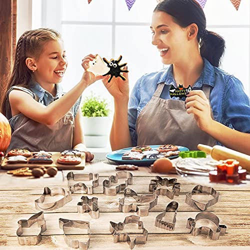 Formine per Biscotti Halloween, GuKKK 12 Pcs Formine per Biscotti in Acciaio Inossidabile, Stampi per Biscotti, Taglierina per Biscotti Set, per Pasticceria Cookie-Gatto Croce Forma Gufo Pipistrello