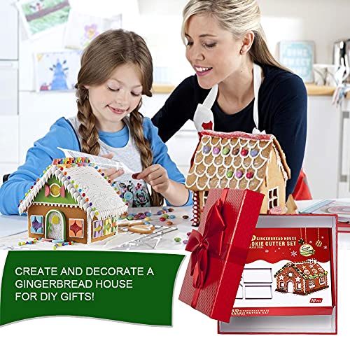Formine Biscotti Natalizie 3D, Gingerbread House di Natale, Christmas Cookie Cutters, Stampo Casa di Marzapane, Stampini per Biscotti in Acciaio Inossidabile, per Decorazioni di Cucina, 10 Pezzi