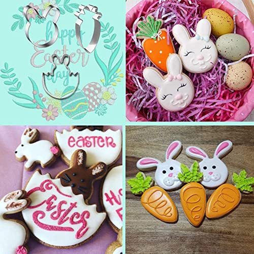 Formine per Biscotti di Pasqua, 5 Pezzi Tagliabiscotti Acciaio Inox Modello Pasqua Uovo, Coniglietto, Testa di Coniglio, Coniglietto Uovo, Carota Stampi Biscotti Pasquali