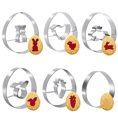 Formine per biscotti pasquali, 6 formine per biscotti Linzer in acciaio inossidabile per uova di Pasqua, coniglietti, pulcini, carote, per feste di cottura, fondente fai da te