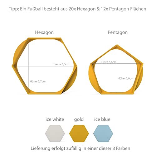 Un must have per gli appassionati di calcio: set composto da 2 formine a forma di rombo, formine per biscotti a forma di pallone da calcio, design a nido d'ape, un esagono/esagonale (dimensioni: 7,7 cm x 8,8 cm) e un pentagono/pentagonale (dimensioni: 6,6 cm x 6,6 cm). Decorazione per torte, motivo pallone da calcio, dimensione originale adatta per 22 cm. In questo modo si crea una fantastica torta di calcio o una torta di calcio. Ideale per feste di calcio o come decorazione per torte di compleanno per bambini.