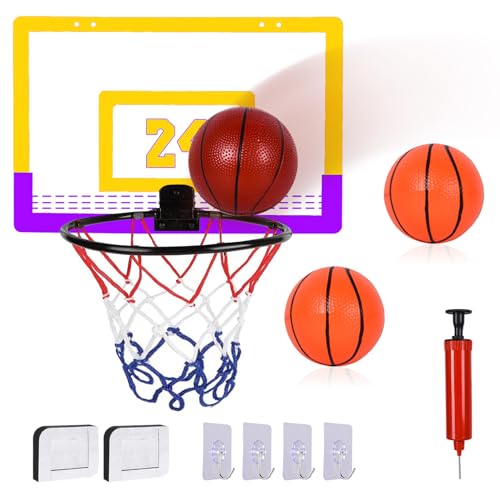 FORMIZON Basket da Camera Interno, Canestro da Basket per Bambini, Mini Cestino Basket Kit Movimento Tavola da Basket Regolabile 3 Giocattolo Basket per Bambini 6 7 8 9 Anni (Giallo)