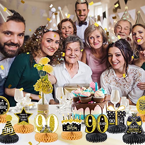 FORMIZON Centrotavola 90° Compleanno, 9 Pezzi 90 Anni Centrotavola a Nido d'Ape, Oro Nero Centrotavola a Nido d'Ape, Decorazione per 90° Compleanno Toppers Tavolo, Feste di Compleanni, Uomini, Donne