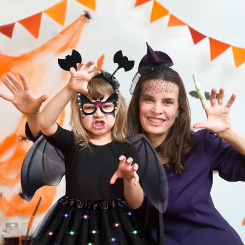 FORMIZON Bat Costume Set, LED Bat Costume Girl, Bat Costume Bambini con Capelli + Tutu Gonna + Ali ecc., Bat Wings Costume per Halloween, Carnevale, Carnevale, Cosplay Party