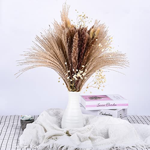 FORMIZON Erba di Pampa, Piume Erba Della Pampas, Phragmites Bouquet Fronde Soffici Fiori Secchi Decorativi, Naturale Secco Pampas Erba Bouquet Boho Decorazioni Perfetta Per Le Decorazioni Nuziali (A)