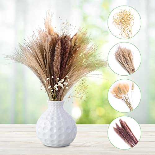 Abbinamento squisito: La nostra erba di pampa è fatta di erba di pampa naturale, mantenendo il colore originale dell'erba di pampa. Ecologico e riciclabile. 4 diversi stili di fiori decorativi da mescolare e abbinare, puoi tagliarlo e tagliarlo come vuoi, adatto a una varietà di stili di vaso.