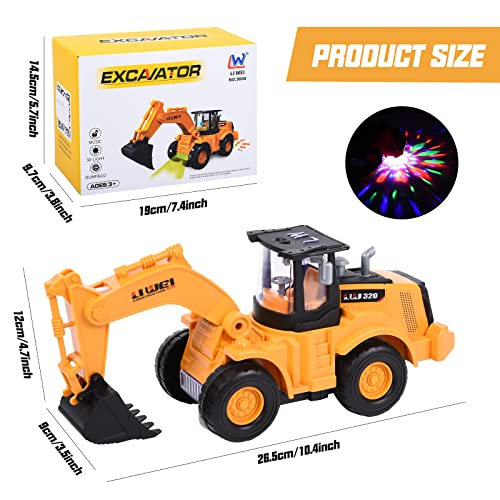 FORMIZON Escavatore Giocattolo, Camminata Automatica, Escavatore in Metallo con Luci e Musica per Bambini, Veicolo da Costruzione, Bulldozer Giocattolo, Macchina Giocattolo Regalo per Bambini 3-7 Anni