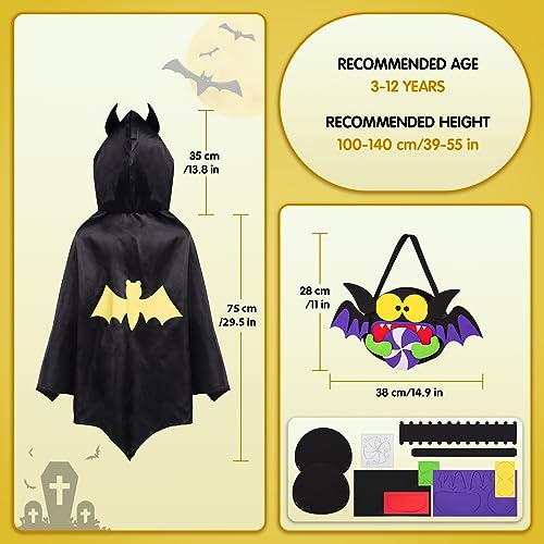【Materiale di Qualità】 Il mantello del pipistrello vampiro di Halloween è realizzato in poliestere, morbido e delicato sulla pelle, non devi preoccuparti di irritare la pelle del tuo bambino quando li indossi.Il sacchetto di caramelle fai da te è realizzato in EVA, il tuo bambino non solo può sperimentare il divertimento del fai da te, ma anche portare il sacchetto di caramelle per uscire e giocare con i vicini è anche una cosa molto felice.
